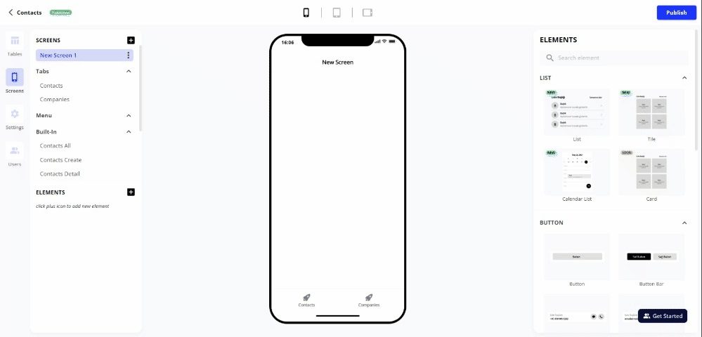 You can add a button to the screen with the Button element, and two buttons with different functions side by side with the Button Group element.